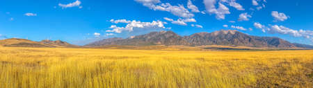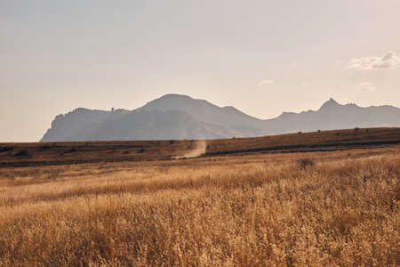 Steppe mountains landscape on the horizon, beautiful mountain landscape. freedom and travel