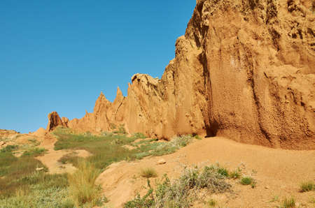 Fairy Tale Canyon, rock formations on the Issyk-Kul lake. Kyrgyzstan.Central Asia