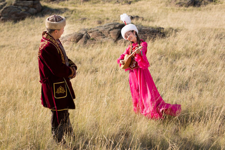 Kazakh woman and man in national costumes
