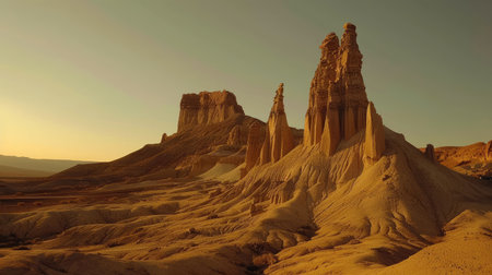 A captivating desert landscape with striking rock formations and a clear sky