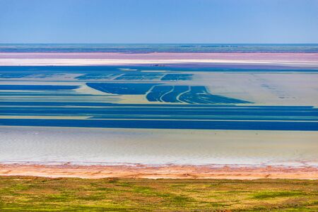 Exotic salt lake Baskunchak in Astrakhan oblast, Russia.
