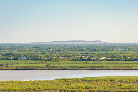 View of the Turkmenistan and Uzbekistan border with the Amu Darya river.