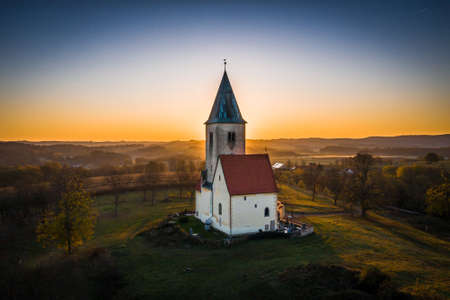 The Chapel of the Mother of God. City of Brno, Czech Republic - Europe. Beautiful autumn landscape. Brno dam and sunset at the golden hour. Autumn season October.