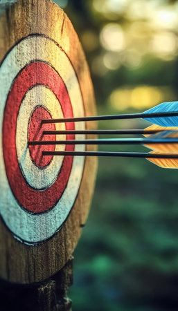 Vibrant concentric rings of a target as a sleek arrow flawlessly strikes the center, symbolizing precision, focus, and achievement.