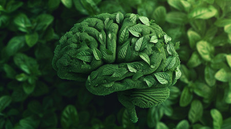 Green Brain Made of Leaves on a Green Background