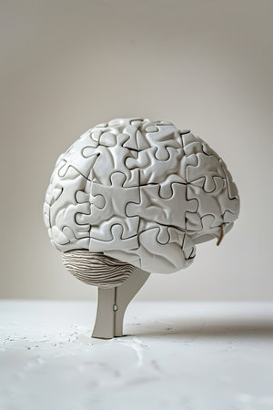 Colorful puzzle brain model symbolizes the complexity of thoughts and cognitive functions. Ideal for topics in education, psychology, and creativity.