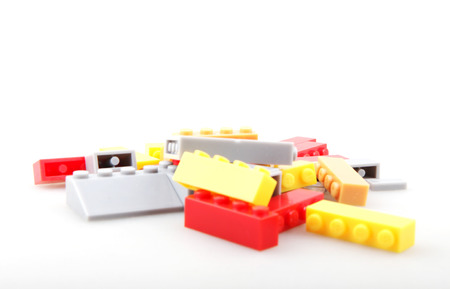 Toy colorful plastic blocks isolated on white background