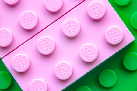 Calgary, Alberta. Canada. Jan 29, 2021. A Macro close up to a pink Lego brick.