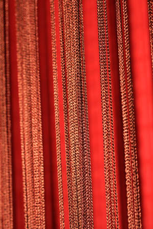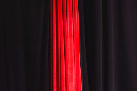 Black and red draped curtain hanging close-up