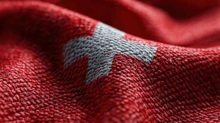 This close-up image showcases the textured surface of the Swiss flag, highlighting intricate fabric details and vibrant colors. Ideal for creative projects.