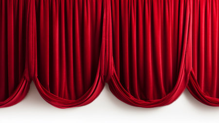 A rich, red velvet curtain drapes elegantly, showcasing its texture and folds, perfect for theatrical settings and enhancing ambiance.