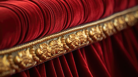 detail shot of velvet curtain fringe and stage ropes, created with generative ai
