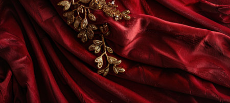 This image showcases an elegant red fabric with soft pleats and a luxurious texture, creating a stunning backdrop ideal for various design projects.