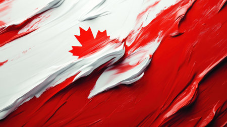 The artwork showcases the Canadian flag created with thick brush strokes of red and white paint, highlighting the iconic maple leaf and evoking a sense of national pride and celebration.