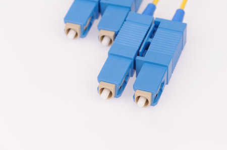 SC SC CONNECTOR YELLOW OFC PATCH CORD SQUARE CONNECTOR IN BLACK BACKGROUND TELE COMMUNICATION