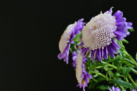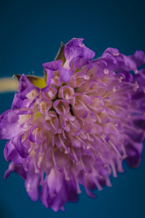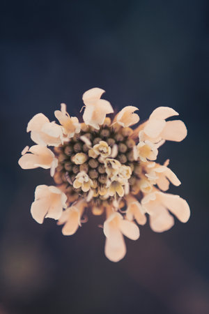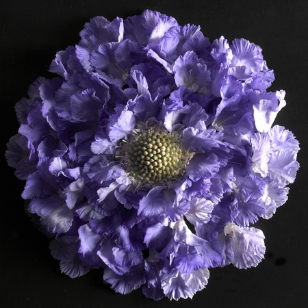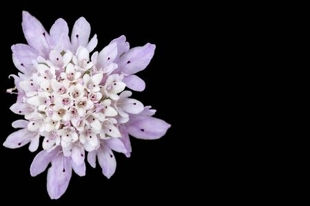 Close up of Pincushion Flower (Scabiosa columbaria) on a dark background