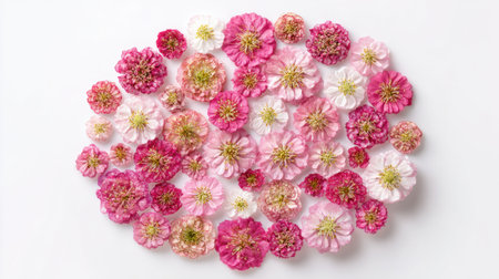 This stunning arrangement showcases a variety of pink and white flowers on a pristine white background, perfect for floral themes and nature-inspired projects.