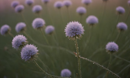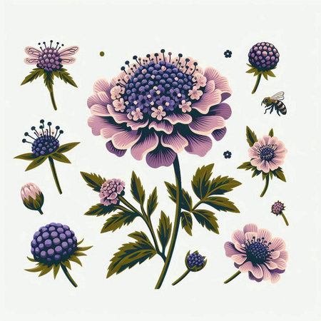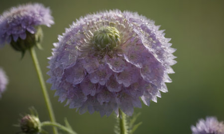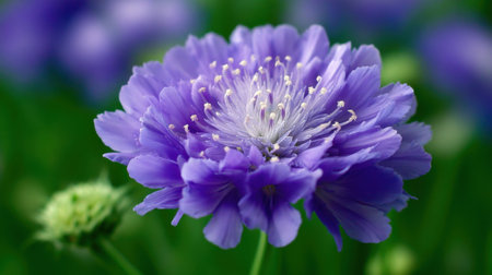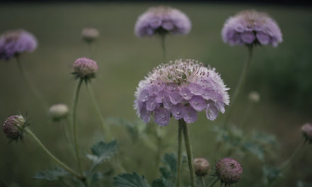Pincushion flower beautifully bloomed with natural background. Created by Generative AI.