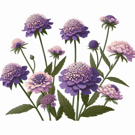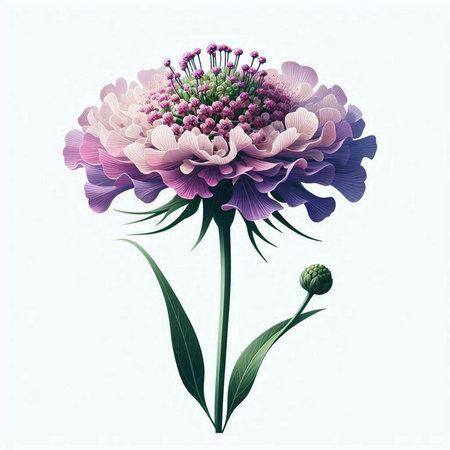 Purple Scabiosa Isolated on White Background. Beautiful Scabiosa Flower