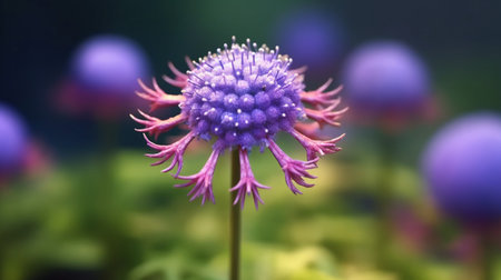 Purple scabious flower. Summer beautiful plan in green garden. Generate ai