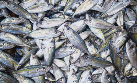 Freshly Caught Yellowstripe Scad A Close-Up View of a Stack of Whole Fish at the Market