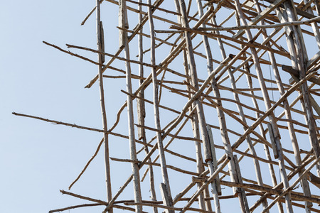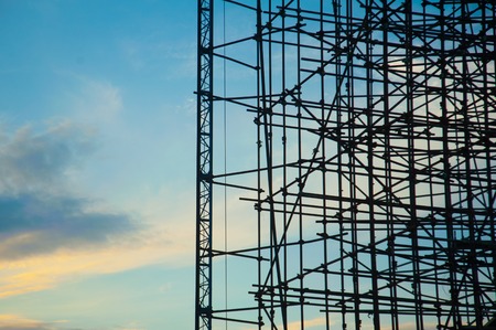 Construction scaffolding materials stacked, blank area in the background for copy space