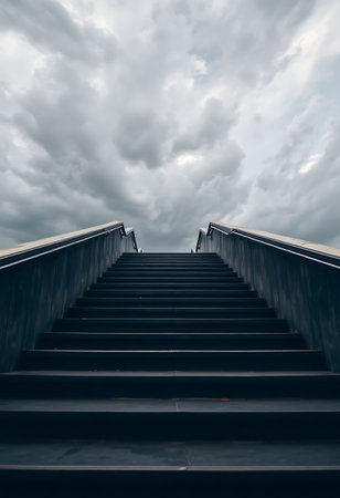 set of stairs leading up to a cloudy sky