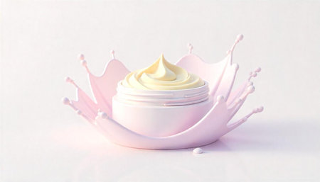 Luxurious cream presentation with splash and elegant design elements