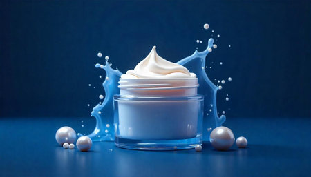 Luxurious cream in jar with pearls and splash effect