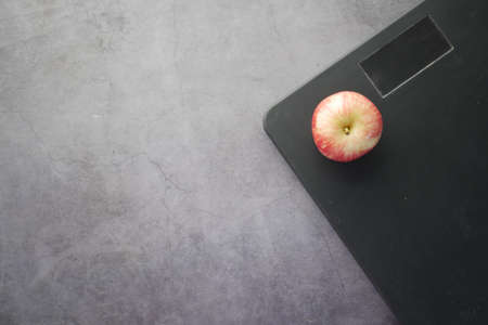Close up of a weight scale and measuring soft tape . Weight loss concept