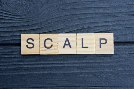 text on word scalp from gray wooden letters on a black background