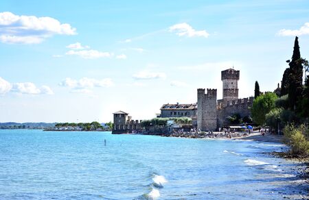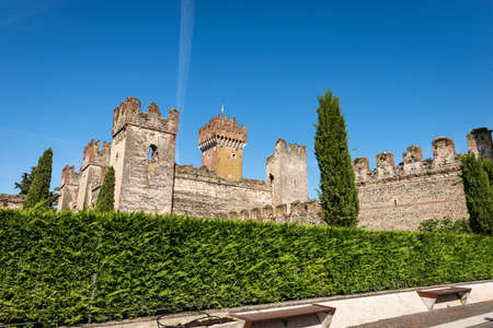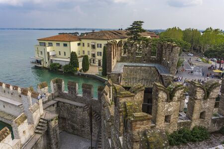 SIRMIONE, ITALY - MAY 24, 2019: View Scaligero Castle in Italy. Castle is a fortress from the Scaliger era built in 13th century.