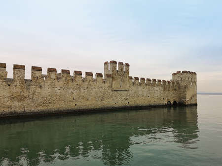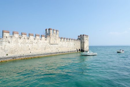 Italy, Lombardy - August 05 2018: the view of the Scaliger Castle fortification walls on August 05 2018 in Sirmione, Italy.