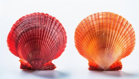 AI Generated. Three Red And White Scallop Shells Arranged In A Row