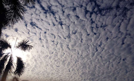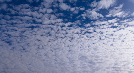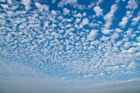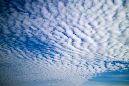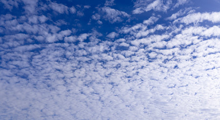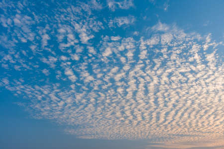 Background of blue sky full with cirrocumulus clouds, panorama cloudy scene.