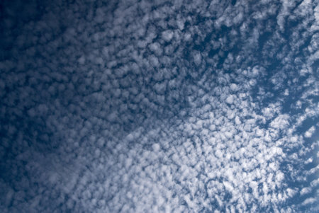 Ccirrocumulus cloud formation overhead against blue sky as nature background.