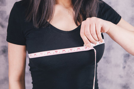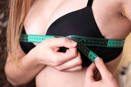 Young women measured her chest with a measuring tape