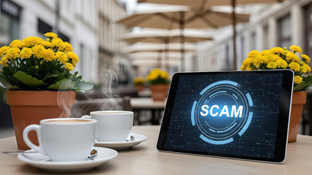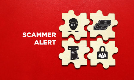 Scam Alert, Internet Fraudulent quotes, words typography top view lettering concept
