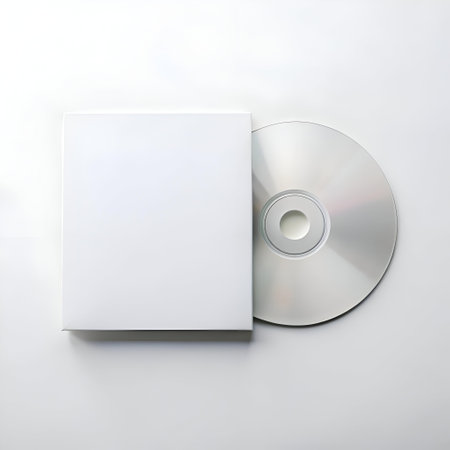 A clean and minimal image of a blank CD in its case. Perfect for representing data storage. technology. or retro aesthetics.