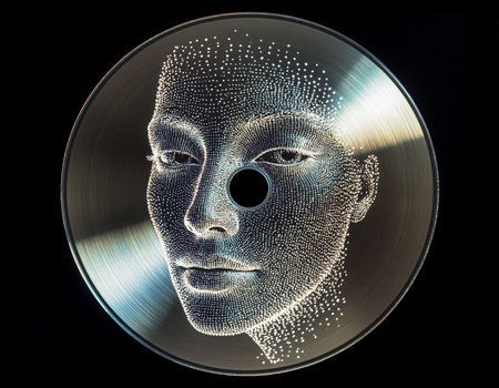 A shiny CD reflects a spectrum of colors against a dark background, representing the evolution of music and data storage in the digital age.