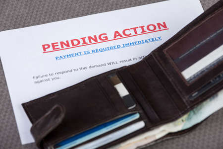 Open wallet with credit cards and cash laying across a final demand letter