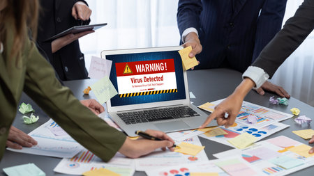 Cyber security software show alert of cyber attack for protection brisk. Danger from virus, phishing and cyber fraud.