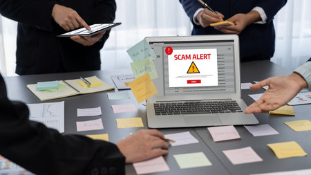 Scam Alert, Internet Fraudulent quotes, words typography top view lettering concept