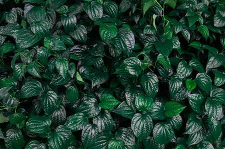 Green leaves background.Green leaves color tone dark in the morning.Tropical Plant in Thailand,environment,good air,fresh.photo concept nature and plant.