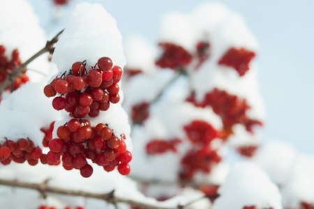 Viburnum berries covered with snow