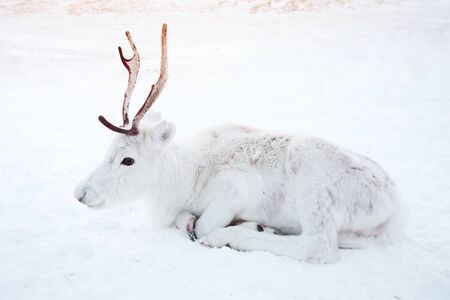 Cute winter white deer. Russia, Siberia, Yamal.