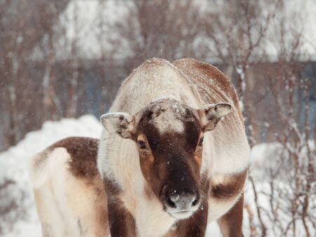 Reindeer in the sima tundra in the snow.