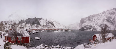 Panorama of Lofoten islands in winter, Norway.