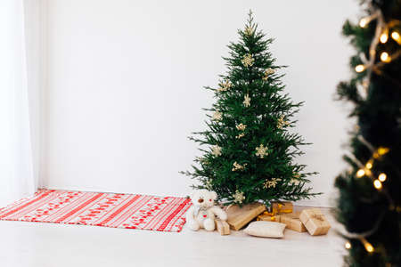 Christmas tree pine with gifts for the new year of the white room 2021 2022
