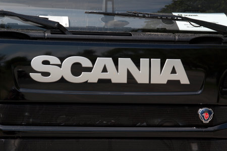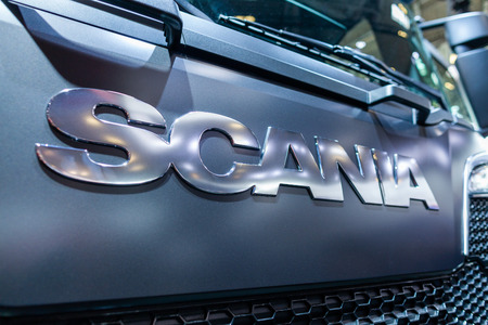 paris, france-june 12, 2016: letters scania on a truck in paris